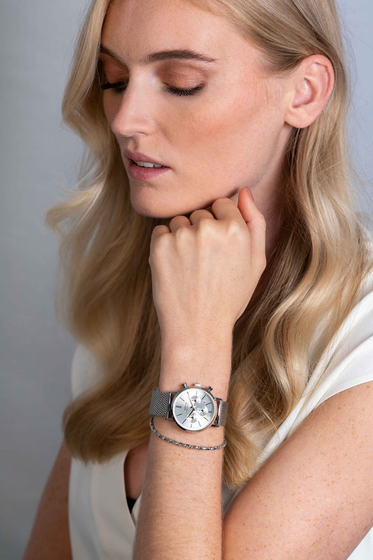 ZINZI horloge CHRONOGRAPH 34mm zilverkleurige wijzerplaat met datum en chronometers, stalen kast, stalen mesh band 18mm ZIW1502Normale prijs €149,00Normale prijsEenheidsprijs / per
